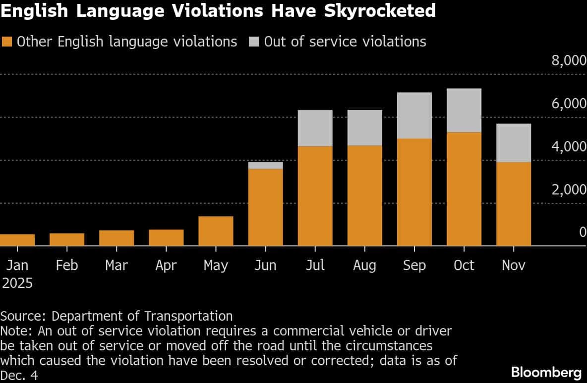 The language crackdown is part of a broader Trump administration campaign that’s upending the trucking industry, a critical pillar of the US economy. In September, Transportation Secretary Sean Duffy sought to sharply limit commercial driver’s licenses for foreign-born applicants, a move since paused by a federal court. In recent months, hundreds of truckers have been swept up in Immigration and Customs Enforcement raids across Oklahoma, Texas, Indiana and New York.